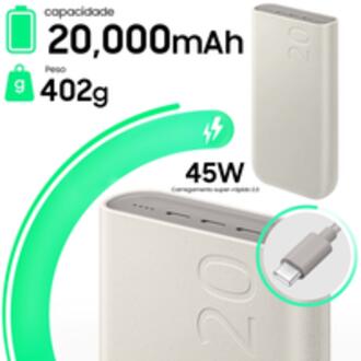 Samsung Power Bank Bateria Carregador Portátil 3x Tipo USB- C, 20000mAh, Super Rápida 45W, 3 Portas, Bege