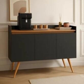 Aparador Retrô 3 Portas Preto/Mel Primus