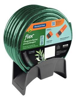💡 Mangueira Flex Para Jardim Tramontina Verde Em Pvc 3 Camadas 20 M Com Engate Rosqueado, Esguicho E Suporte Mural