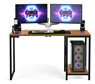📌 Escrivaninha Gamer Tokyo Mdf Mesa Para Computador Home Office E Estudos Com Suporte Para Cpu E Prateleira Lateral Estrutura Em Aço Estilo Industrial Design Moderno Amplo Cor Canela Preto Preto/canela