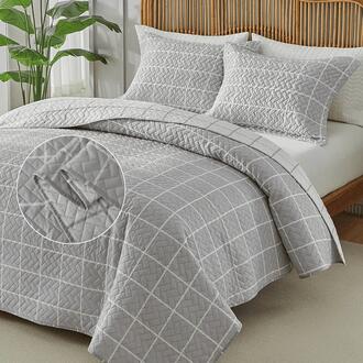 📣 Kit Colcha Casal 3 Peças Itália 150 Fios Grid Dupla Face Cor Cinza