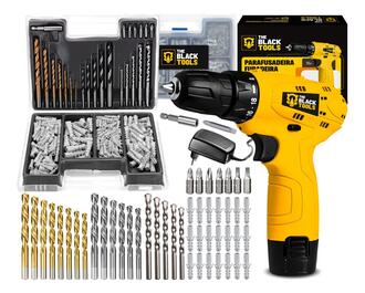 Parafusadeira Furadeira 3/8 A Bateria Tb12a The Black Tools Jogo Brocas E Buchas 300 Peças