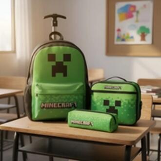 Kit Escolar Minecraft: Mochila, Lancheira e Estojo
