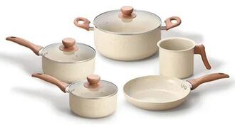🤩 Jogo 5 Panelas Antiaderentes de Cerâmica Bege